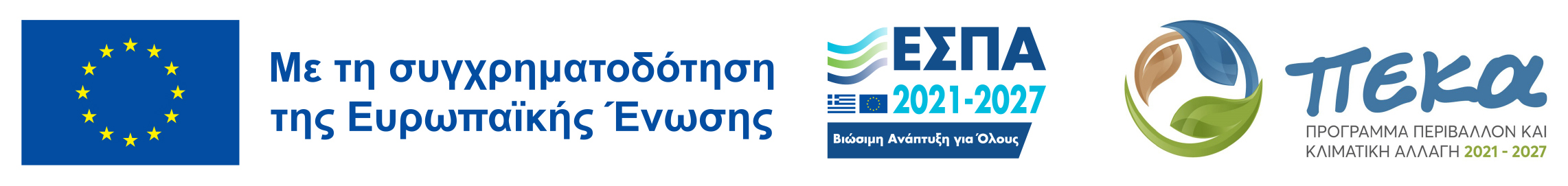 Το Έργο συγχρηματοδοτείται από το Ευρωπαϊκό Πρόγραμμα Περιφερειακής Ανάπτυξης της Ε.Ε. μέσω των Επιχειρησιακών Προγραμμάτων «Επιχειρηματικότητα, Ανταγωνιστικότητα & Καινοτομία (ΕΠΑνΕΚ)» και «Περιβάλλον & Κλιματική Αλλαγή (ΠΕΚΑ)» του ΕΣΠΑ 2014-2020 και 2021-2027 αντίστοιχα.
