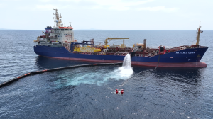 Με απόλυτη επιτυχία πραγματοποιήθηκε την Παρασκευή 6 Ιουνίου, η άσκηση υψηλής επιχειρησιακής ετοιμότητας για την καταπολέμηση θαλάσσιας ρύπανσης στην περιοχή του FSRU Αλεξανδρούπολης, περίπου 17 χιλιόμετρα νοτιοδυτικά του λιμένα, σε συνεργασία με τον Ευρωπαϊκό Οργανισμό για την Ασφάλεια στη Θάλασσα (EMSA). Πρόκειται για την πρώτη φορά που πραγματοποιείται στην περιοχή άσκηση τέτοιας εμβέλειας, με εμπλοκή ευρωπαϊκών μέσων και άμεση διασύνδεση με ενεργειακή λιμενική υποδομή, γεγονός που επιβεβαιώνει τον ολοένα και αυξανόμενο ρόλο της Αλεξανδρούπολης στην ευρωπαϊκή περιβαλλοντική στρατηγική.